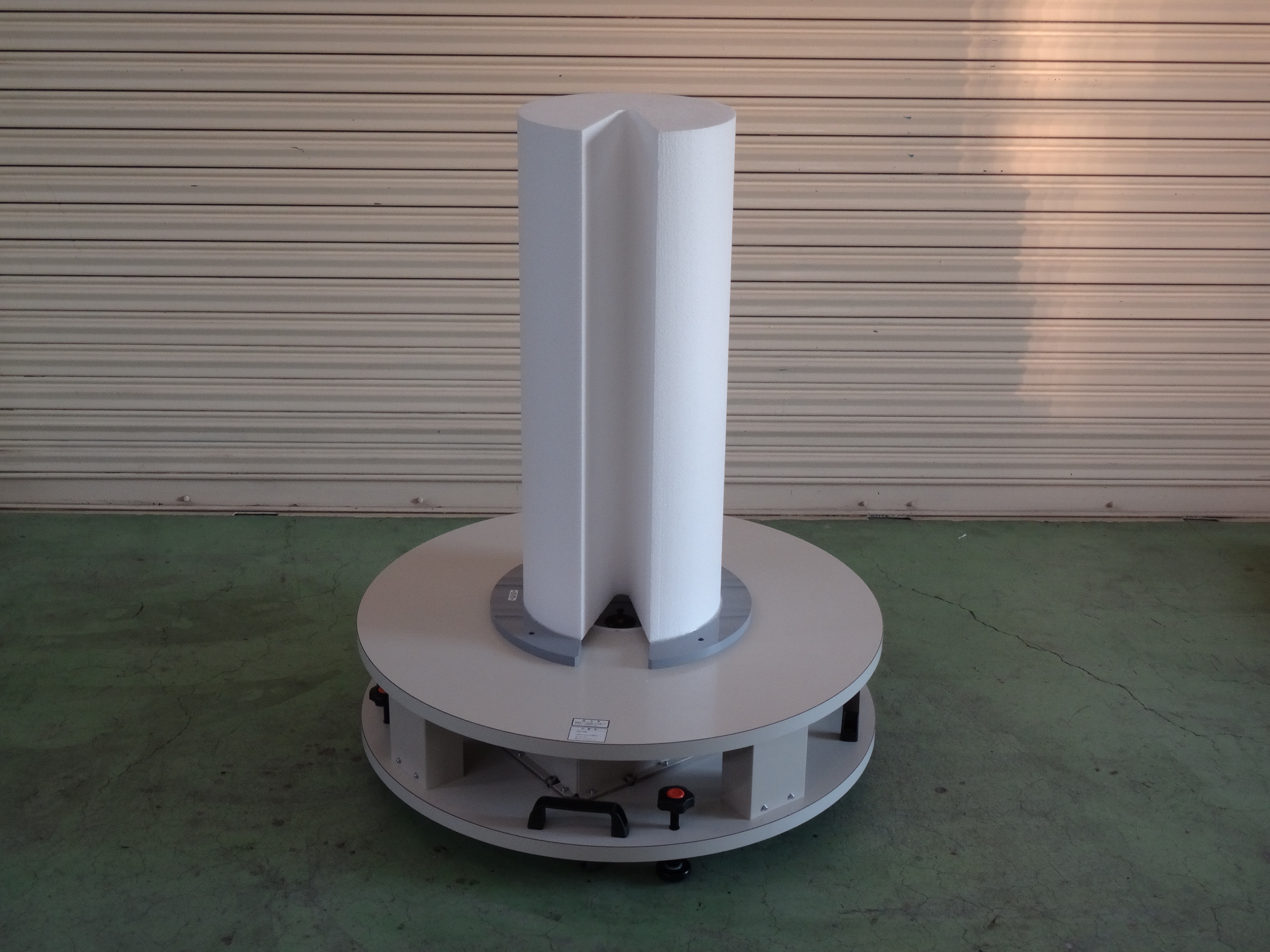 ●上部に試料を固定できる床上全高2.5mの発泡ポールです(2分割で使用可能) ●ポールの側面には同軸ケーブルを這わせられる溝があります。 ●Φ2.0mのターンテーブルに取り付けられる機構です |